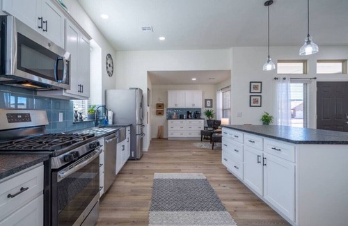 Roomy, peaceful home waiting for you with three bedrooms (two king beds and a queen) and two bathrooms, ideal for family visits like weddings, birthdays, reunions or holidays. This home would be perfect for sharing with your loved ones and creating lasting memories. The open floor plan of this clean modern home is wonderful for entertaining, cooking or enjoying the company of friends and family.