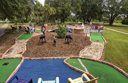 There are theme park style carousel rides, commercial water slide, a custom-built put-put course, indoor rock climbing, sports courts, and so much more.