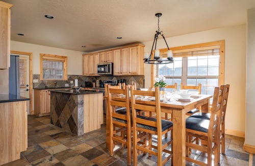- Fully equipped kitchen with mountain decor.