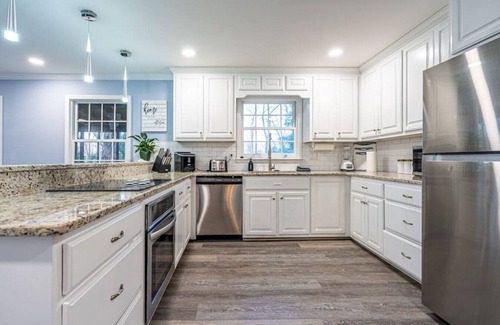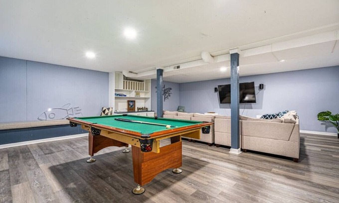"The Strata" features modern living & simplistic comfort right here in Rocket City! This newly renovated 4000 sq foot home boasts 6 spacious bedrooms and 3 "floating" bathrooms. Recreation room offers entertainment for guests, families, and friends alike. Outfitted with a 8' pool table, large 75" smart TV for streaming, a Bluetooth audio system for music, and board games for adults and kids, "The Strata" offers so much for travelers looking for their next adventure.