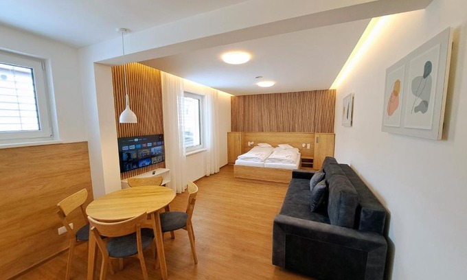 6bits Apartments enjoys a location in Jeseník, 22 miles from Museum of Paper Velké Losiny and 25 miles from Złoty Stok Gold Mine. Providing free private parking, the 4-star apartment is 21 miles from Praděd. Each room is equipped with a flat-screen TV with streaming services. At the apartment complex, each unit is equipped with a wardrobe. All rooms are fitted with a coffee machine, a private bathroom, and free Wifi, while selected rooms have a terrace and some have mountain views. At the apartment complex, all units are fitted with bed linen and towels. Skiing, cycling, and hiking are possible within the area, and the apartment offers ski storage space. Open-air folk museum is 27 miles from 6bits Apartments. Ostrava Leos Janacek Airport is 71 miles away.