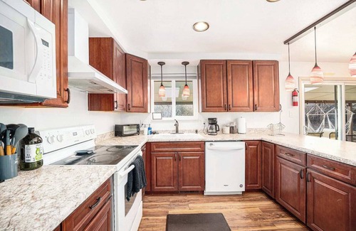 This home is ready for guests of all ages, with a crib, Pack ’n Play, and baby safety gates. Board games provide simple fun, and the washer and dryer make extended stays easier. Free parking for up to five vehicles and an EV charger are available on-site. Self check-in is seamless with keypad entry, and safety is a priority with exterior cameras, smoke and carbon monoxide alarms, a fire extinguisher, and a first aid kit.