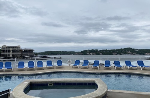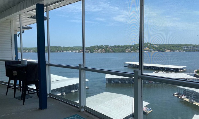 Come stay at our beautiful waterfront condo with amazing views of the Lake of the Ozarks and surrounding areas. Beautiful sunny days will be yours from our screened in and covered balcony, on the 6th (top) floor of the Monarch Cove condominium, with easy access by elevator. Just minutes from the Bagnell Dam Strip, where you can find many local attractions, events, shopping, and live entertainment.
