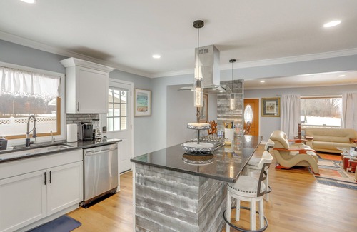 Conveniently located between Sandusky and Huron, this vacation rental ensures you get the most out of your stay. There are plenty of nearby family-friendly activities — ride the rollercoasters at Cedar Point, make a splash at Kalahari Resort, or rent a boat for endless fun on Lake Erie! In your downtime, relax at the 5-bedroom, 3-bath home with a BBQ and s’mores by the fire pit.