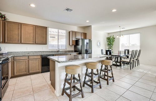 Explore the best of Arizona with ease when you stay at this 4-bedroom, 3-bath vacation rental! Complete with an updated open floor plan, a well-equipped kitchen, and a central location surrounded by the area's top attractions, this Peoria home offers a unique blend of comfort and convenience. Spend your days catching a game at State Farm Stadium, reconnecting with nature at Peoria Sunrise Mountain Preserve, or teeing off on world-class golf courses when you stay at this unforgettable retreat.