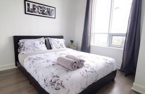 Enjoy a stylish experience at this centrally located Penthouse in south Etobicoke. Spacious & bright welcoming unit with gorgeous views of Toronto. Located 10 minutes from Pearson Airport & 10 minutes from downtown Toronto. This Penthouse offers a fully equipped kitchen for cooking, coffee/tea, Netflix, internet, desk area, laundry room and free parking. 5 mins to Sherway Gardens mall and restaurants.