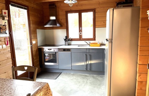 These are two identical and recent chalets (2009) of 70 M2 three ears at the gites de France located next to Lake Chambon on a plot of 2000 M2, they have two large bedrooms upstairs (a large 140 bed and two 90 beds equipped with duvets, travel cot with mattress, high chair, barrier for children and on request baby bath), possibility one or two extra people on sofa bed (with supplement 50 € for two) any comfort (full kitchen, raclette sets and fondue, crepe maker, coffee maker, kettle, multi-function robot, electric mixer), large fridge, dishwasher, washing machine, 82 cm flat screen TV, TNT, DVD player, hair dryer, 16 m2 terrace (with teak table and chairs ), barbecue, pétanque court… ..), private land (with car parking) and local available for bikes, skis or other, 250 M from the beach of Lake Chambon (beach with pedal boats, shops, restaurants, park attractions for children etc .......) They are 14 km from the downhill ski slopes of Super Besse (12 km from the cross-country ski trails of Pertuyzat and Pavin) and 17 km from those of Mont Dore (but from now on there is a connection connecting the two), center of hydrotherapy and aqualulics 6 kms (st nectaire), a footpath and bikes completely redone (from which several other trails start in the mountain) starts just behind the chalets and goes around the lake passing by the two beaches (approx 4 , 5 km long) and returns to the chalets via Chambon sur lac, fishing is allowed in the lake and the river.