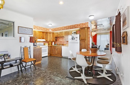 As you enter this groovy getaway, you'll be transported back in time by the 70's themed décor and furniture!