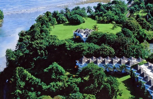This is Port Antonio, where Goblin Hill Villas at San San sits on eleven acres of lawns and lush gardens, overlooking sparkling Jamaican white sand beaches and turquoise Caribbean water.