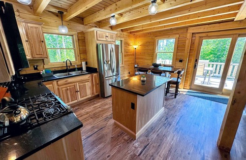 This brand-new log home will WOW you with its fantastic location just off Main Street in Bethlehem, with easy access to its fabulous restaurants and shops, including Rosa Flamingo's, Rek'lis brewery, Super Secret Ice Cream and more! Designed for comfort and adventure, this spacious retreat offers 4 bedrooms, a loft with extra sleeping space, and 3 bathrooms, all wrapped in the warm charm of a classic log cabin. Vaulted ceilings, a gorgeous gas fireplace with a stone hearth, and modern amenities create the perfect blend of rustic charm and contemporary convenience.The open-concept kitchen, dining, and living area is perfect for home-cooked meals!