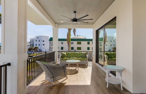 With over 4,800 sq. ft. of simple elegance, this home has an elevator, tile flooring throughout, and beautiful contemporary architectural features of tray ceilings and/or specialty vaulted ceilings. With 7 spacious bedrooms and 6.5 bathrooms, this home can comfortably accommodate up to 18 guests. This home boasts two Master Suites, one on the first floor and the other on the top floor. All bedrooms are equipped with powered, room darkening shades, 50" TVs and all but one bedroom has direct balcony access; Four of the bedrooms feature plush, King-sized beds, ensuring a restful night's sleep. The fifth bedroom includes a plush Queen-over-Queen sized bunk bed. This floor's open concept living area is designed for relaxation and entertainment, complete with a wet bar and mini-fridge, pullout couch, large 75" Smart TV, and ample seating for everyone, a great space for the younger generation of your group to gather to play cards, board games, or work on a puzzle. This level also features the laundry room with two sets of stacked washers/dryers and a soaker sink for your convenience. The third floor houses the sixth bedroom/office space which features an exotic wood desk, printer, 50" TV, and a luxury 80" queen-sized sleeper sofa with a built-in 4" thick Temper-Pedic mattress, not the average sofa. On the top floor you will find the spectacular master bedroom with a 65" TV, vaulted ceiling and King-size four-post bed to complete your blissful, tropical retreat. Step out onto the front balcony and greet the Gulf of Mexico good morning, spy an occasional pod of dolphins skipping across the waves, or catch a magnificent sunset. Pamper yourself in the spa-like master bathroom featuring separate vanities, a separate water-closet with bidet, a deep soaker tub, and an enormous walk-in shower with a waterfall showerhead.