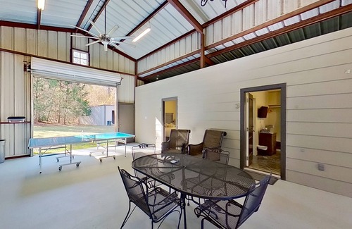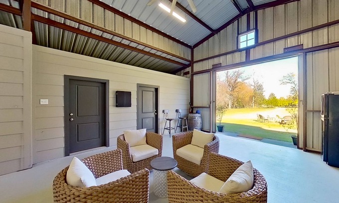 Make life-long memories at this countryside hideaway! Surrounded by 75 acres of scenic woodlands, this repurposed barn has been fully retrofitted and custom-renovated to offer a peaceful pastoral paradise while ensuring complete modern comfort for you and your guests. A screened porch lets you greet the day with a cup of coffee while your favorite nightcap can be enjoyed around the rustic wood-burning firepit. For a small additional daily fee, you'll also have the option to reserve a golf cart for getting around the property during your stay. Complimentary on-site pool access adds even more vacation value to this countryside charmer.