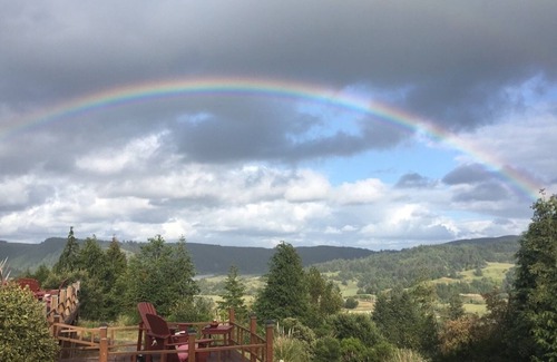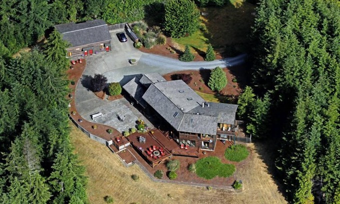 This 15 acre private Golfer's Estate has 7000' of living space plus a huge deck with gas fire pit, the perfect spot to gather with your group before and after golfing. 11 bedrooms with 16 beds and 7 full bathrooms is only a 8 minute drive to Bandon Dunes Golf Resort,spectacular beaches and Old Town Bandon. You'll enjoy our unique location because of it's warmer temperatures, less wind, and 180 degree views.