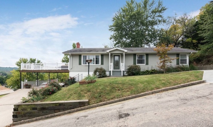 Enjoy our 5 bedroom 4.5 bathroom home with a beautiful overlook of Hermann,mo. Plenty of room for your group to spread out with a full kitchen and livingroom upstairs as well as a bar and livingroom downstairs. Huge deck overlooking Hermann,mo.