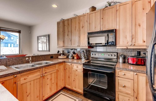 Parking for 2 vehicles on-site - one in the garage, the other in the driveway. Due to plowing needs, cars parked on the street will be towed. A third vehicle could easily be parked for 24 hours in the satellite lot a mile away (on the way to Breck)