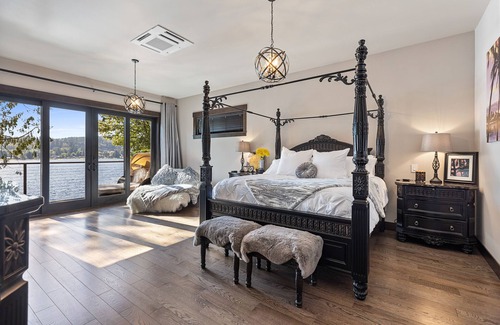 BEDROOM #3: Upper level bedroom with expansive lake views and king bed.