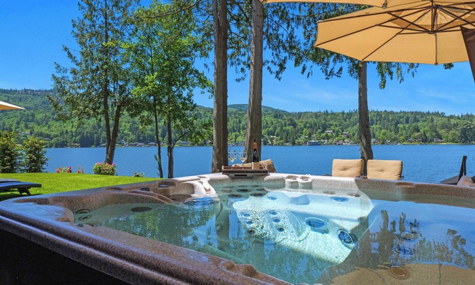 Welcome to the Big Lake Lodge, an 8,200+SF lakefront modern luxury lodge. The 7 bedroom 5.5 bath lakefront lodge was custom built and completed in the summer of 2022. Big Lake Lodge features endless luxury amenities including a full gourmet kitchen on the main floor, with state of the art smart appliances, an additional kitchen on the lower floor, spa-inspired bathrooms with luxury features and finishes, 7 person hot tub, dock, 75 feet of shoreline, kayaks, paddle boards, and so much more. The Big Lake Lodge is located about 90 minutes from Seattle and 60 minutes from the Canadian border. Active families and groups will enjoy endless opportunities for outdoor adventure - from boating, swimming, fishing, hiking, biking, and golfing!