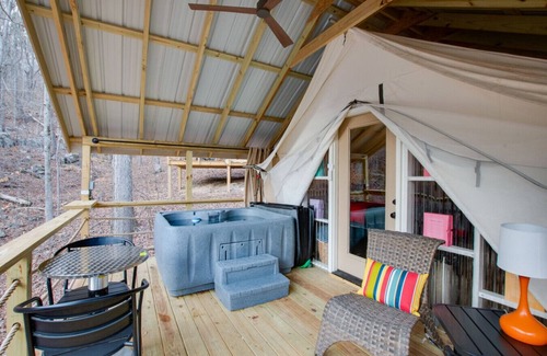 Come visit our Game Room Glamping Tent, one of six themed glamping tents at our resort. Set on forty acres near beautiful Lake Guntersville, Alabama, our resort-style glamping tents offers the perfect destination for quick a getaway or staycation. Visit our profile to see our other themed glamping tent listings as well as our treehouses!