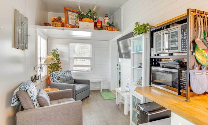 8 Mi to Cathedral Caverns: Tiny Home Hideaway is located in Woodville. 8 Mi to Cathedral Caverns: Tiny Home Hideaway provides accommodation, featuring Parking, Balcony/Terrace, Security/Safety, among other amenities. This Cottage features Parking, Balcony/Terrace, Security/Safety, to make your stay a comfortable one.