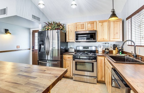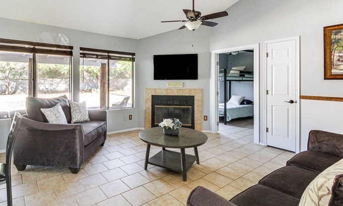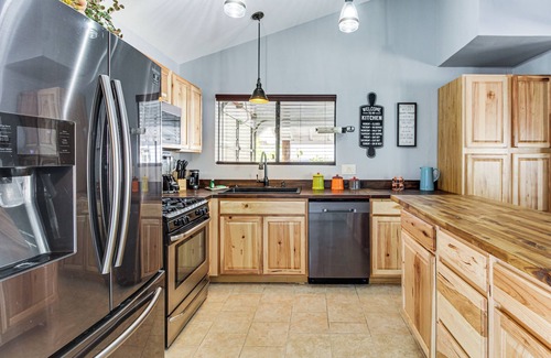 Your next relaxing Arizona retreat awaits at this 3-bedroom, 2-bath vacation rental in Tucson! Ideal for a peaceful family escape, this lovely home features a cozy interior with a fireplace, a fully equipped kitchen, and a private backyard perfect for entertaining your crew. Ready to venture out? Experience the thrills of Funtasticks Family Fun Park or explore the exhibits at the Arizona-Sonora Desert Museum!