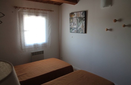 On the heights of Saint Pierre, on the edge of the Clape massif, in a quiet area 13 minutes walk from the beach, and 15 minutes from the city center. Spacious and quiet house of 80 m2 which can accommodate 6 people and a baby. It consists on the ground floor of a fully equipped kitchen (microwave, filter coffee maker, Senseo coffee maker, dishwasher, hob and oven, refrigerator and freezer) opening onto a terrace with table, chairs, barbecue and louge chairs. Dining room and living room with 2 sofas (non-convertible) opening onto a loggia and terrace. Bedroom on the ground floor with 160x200 bed. Bathroom and separated toilet. Laundry room with washing machine.