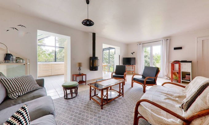 Welcome to this holiday home in Saint-Gildas-de-Rhuys, in the heart of the magnificent Rhuys peninsula, in southern Brittany! Ideally located just 900 metres from the village and the first beaches, the furnished house can comfortably accommodate 4 adults and 2 children. Perfect for families, it offers all the necessary comfort for a worry-free stay: fully equipped kitchen, quality bedding, large garden with outdoor furniture and barbecue to enjoy long summer evenings around grilled food. Between swimming, walks along the seaside, discovering Breton specialities and excursions to the islands of the Gulf of Morbihan, it is the ideal starting point for exploring the peninsula.**During the month of July, noise disturbances are possible as work is ongoing right next to the house. There will be no more in August.Enter through the entrance door and discover a large, warm living space. The kitchen, located in the house's extension and open to the garden, is fully equipped: refrigerator, freezer, oven, microwave, dishwasher, as well as all the necessary utensils for cooking. For your breakfasts, you will find a Nespresso pod coffee maker, a kettle, and a toaster. Share your meals around the dining table for 6 and extend the evening in the living room, comfortably seated on the sofas in front of the television.The night area consists of 3 bedrooms: on the ground floor, a bedroom with a double bed (140x190 cm), and upstairs, a master bedroom with a Queen Size bed (160x190 cm) and a children's bedroom with two single beds (90x190 cm).Two bathrooms are at your disposal: one on the ground floor with a shower and toilet, the other upstairs with a bathtub. An additional independent toilet is also located upstairs for added comfort.A playroom fitted out for children is located upstairs. You will find books, board games and toys for children.Finally, the garage allows you to store your bicycles and includes a washing machine, an iron and an ironing board.You have space in front of the accommodation to park safely.Ideally located for families and close to the sea, the rental is located at:- 800 m from Port aux Moines beach- 1 km from Poulgor beach- 950 m from Saint-Gildas-de-Rhuys centre- 1 km from "Le Casier" restaurant- 3 km from "Le Vert d'O" restaurant- 4 km from "L'Endroit" restaurant- 1 km from "SPAR" supermarket- 3 km from "Carrefour Express" supermarket- 4 km from Rohu Nautical Club- 5 km from Bluegreen Rhuys Kerver Golf Domain- 6 km from Sarzeau town- 9 km from "Pop corn Labyrinthe" theme park- 10 km from Suscinio Castle- 12 km from "Celt'Aventures" theme park- 20 km from Aquagolfe Aquatic Centre- 25 km from Bretagne Atlantique Hospital Centre - Vannes site- 25 km from Vannes train stationSaint-Gildas-de-Rhuys, a charming Breton commune nestled on the Rhuys peninsula, captivates with its fine sandy beaches like Goh Velin and its coastal paths offering superb panoramas. The Romanesque abbey and Port aux Moines bear witness to a rich historical heritage. Ideal for hiking, water sports or peaceful walks, it is also close to Arzon, Sarzeau and the Suscinio castle. From the peninsula's coastline, it is easy to reach by boat the islands of the Gulf of Morbihan, such as Île d'Arz or Île aux Moines. A perfect place to discover Brittany between nature and culture.This accommodation benefits from a concierge service with a team available throughout the stay for personalized services.This furnished property has Wi-Fi access.This location does not have access for people with reduced mobility.Animals are not allowed in this rental.The tourist tax is added to the rental amount and must be paid in advance of your stay.REF: Hoomy12407