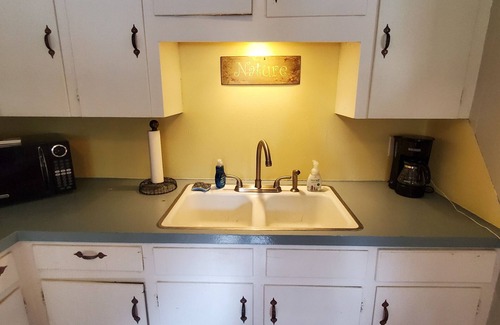 Despite this precious vintage and mobile home and apartment community being right smack in the middle of town, this property is nestled on a quiet corner with beautiful trees. You can hear the wind blowing through the leaves, creating a nice relaxing atmosphere. Even though you're staying in this oasis, most modern creature comforts are within walking distance. It is truly unique to the area and a great hidden gem.