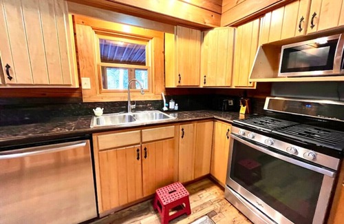 A fully equipped kitchen and gas grill on the back deck ensure all your culinary needs are met, with grocery store options just a short drive away.