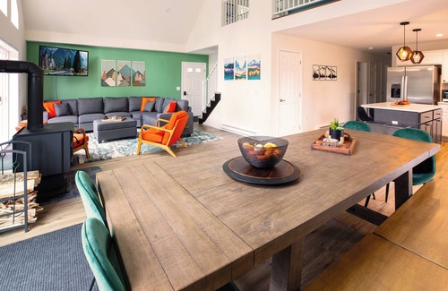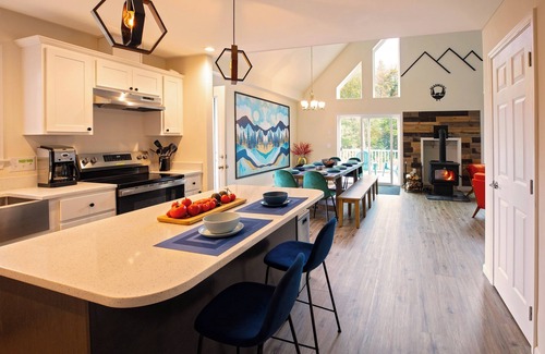 Bearmont comfortably sleeps 12 guests across 4 spacious bedrooms and a bunk room that sleeps up to 5. With 3,600 SqFt of space and 3 separate living room areas, this new home amply accommodates large groups as well as multiple families travelling together.