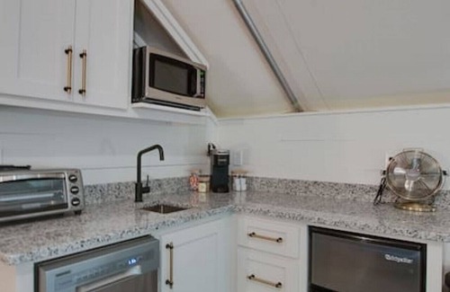 Hogwarts House brings modern luxury to the peaceful outdoors. Your glamping tent amenities include: