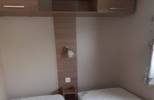 A 180 ° view of the sea! Located in Equihen-Plage (62), you are in one of the most beautiful locations. Oriented SOUTH-WEST, close to the entrance of the campsite and the sea, at the end of a private road, not overlooked, in a recent high-end mobile home.