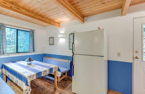 PLEASE NOTE: This vacation property is accessed via a long and steep gravel driveway that can be impassable during times of inclement weather conditions. Designated parking is permitted at the end of the driveway and is highly recommended. Persons with mobility issues should consider the walk from the parking area to the cabin and in navigating the two staircases inside the cabin that are required to access the bedrooms.