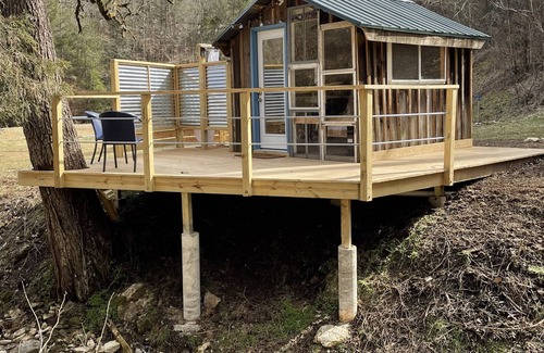 Our new tiny space is situated near the center of the Red River Gorge, alongside the headwaters of the South Fork of the Red River. This exceptional stay offers beautiful views through the window wall or the deck overlooking the creek. It is perfect for 1 or 2 people looking for a relaxing getaway.