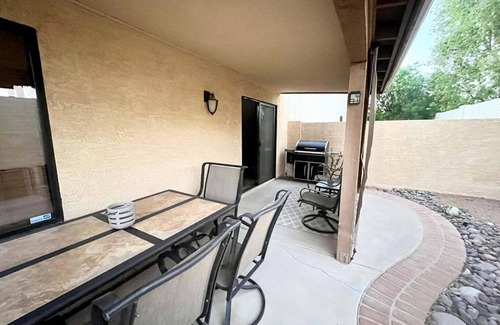 Spacious master bedroom with king size bed and lounge chair for relaxing or reading by widow. Master Bathroom has dual vanity sinks. Both bathrooms have new showers. Large comfortable living room. BBQ for outdoor cooking.. Kitchen has wine cooler for your wine tasting evenings. Fireplace in living room. Private garage to park your car. Walking distance to daily activities. Close to restaurants, fast foods, groceries store, gas stations, banks and hospitals. You are only 20 minutes from the buzzling restaurants and pubs of Old downtown Scottsdale plus all the beautiful shopping stores to browse. Free Public parking. If your active there is the Scottsdale Ranch Tennis Center with 15 courts, volley ball, basketball courts playground for kids. Pickleball is 5 minutes away and Talking Stick Casino. Guest can use Lake Sarine free Kayaking, paddle boat, canoeing and fishing (toss back).There is enjoyment everywhere