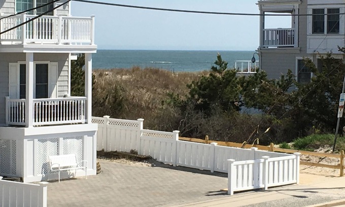 A beautiful large 4 bedroom house with spectacular ocean views. The house is literally one house away from the beach in the Townsend's Inlet section of Sea Isle. Just Fifty feet to the beach access. Enjoy the ocean views from the large wrap-around deck on the upper floor or lower deck off of the master bedroom. Every bedroom is nicely appointed with beach décor and all beds have memory foam mattresses. The owners take pride in making sure that every amenity if available and ensures a clean and beautiful home. The house comfortably sleeps 11. The house is located in a quiet section of Sea Isle however within walking / biking distance to restaurants and shopping. With being only steps to the beach you can enjoy all that the beach has to offer morning, noon and night. Xfinity TV and wireless internet provided throughout the house.