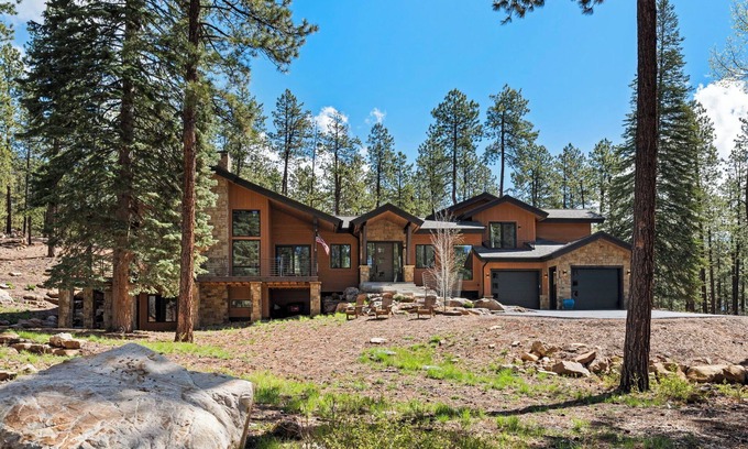 Escape to Shadow's Retreat, a luxurious mountain haven tucked within the exclusive gates of Taylor Ranch, just 10 miles from the heart of Durango. Set on 35 acres of pristine wilderness, this 3,200-square-foot, Air-Conditioned home offers the perfect blend of tranquility and adventure, with frequent wildlife sightings and direct access to the San Juan National Forest trails. Inside, you'll find a thoughtfully designed interior with cozy-yet-modern furnishings, multiple living spaces, a full gourmet kitchen, and all the comforts of home — from Smart TVs and a ping-pong table to a gas fireplace and work-friendly spaces.