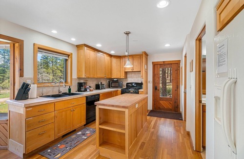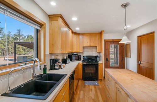 The house features two wood burning stoves, ultra high-speed starlink internet, a large kitchen with coffee bar, 10-person dining table, large living room with 65” smart TV, a sunroom, and front and rear decks with a fenced yard for your pooch. Enjoy watching wild deer, foxes, turkeys, elk, and so much more right from the deck and relax in the shade of the mature pines that surround the cabin. Come and get away in all the comforts of this new home and fantastic location allowing you to easily access all of the incredible amenities and recreation you come to Durango to experience.