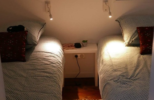 Children's bedroom: two 90 × 190 cm beds, duvets (140 × 200), a bedside table, two bedside lamps (sconces), two shelves, parquet - sheets are not provided