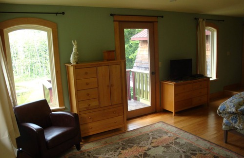 Foxglove cottage is a charming cottage surrounded by a lovely garden situated on 20 acres of majestic fir and cedar forest.There is a small swimming pond with a dock and my artists studio ..The house is completely remodeled and almost brand new. There are slate floors in the kitchen, dining room and entry way and bamboo floors thru out the rest of the house. The original structure was built with beach logs and field stones and lots of creativity . This is truly a craftsman's creation.