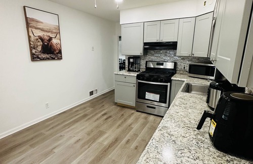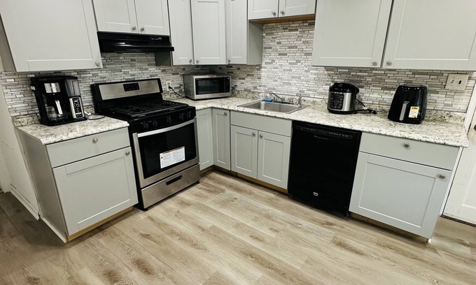 Exclusive, well-lit and furnished single-family house with easy access to your favorite stores and major highways. Experience the comforts of home at this stylish and charming brick cape cod in Sharon Hill with outdoor patio and private off-street parking. This house is 7 minutes away from Philadelphia International Airport. It is also close to major sports arenas and stadiums including Lincoln Financial Field, Citizens Bank Park, Wells Fargo Center, and all major concert event spaces.