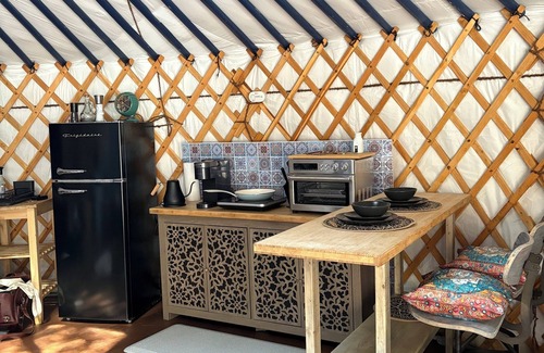 *Please note that there is NO PLUMBING in the Yurt. Fresh hot and cold water is provided by a dispenser. The water is potable.