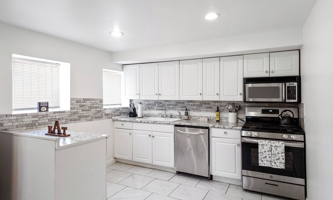 Located in St. Louis, this 2-bedroom vacation home lets you experience it all. Fans of nature and the outdoors will love being 3 minutes by car from Tower Grove Park and 6 minutes from Forest Park. With the property's convenient uncovered onsite parking, you'll be ready to make the quick 4-minute drive to St. Louis Union Station or the 4-minute drive to Enterprise Center.