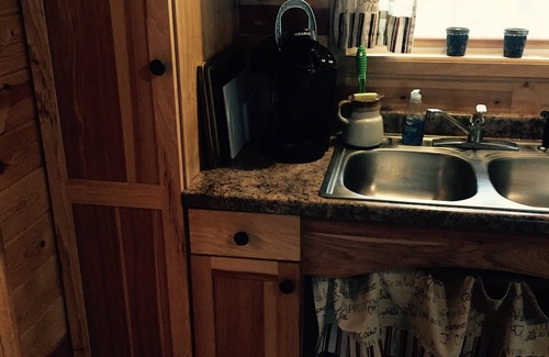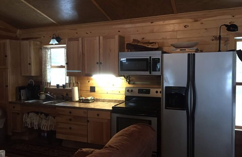 We are surrounded by wildlife out here, and lots of towering pines. The cabin is tucked into the forest with rolling hills, solid forest and tons of trails. The little lake is secluded, not developed and the kayaks/canoe/row boat are free to you to use. In June and July the lake is great to paddle, by August it is quite weedy and less desirable to paddle. After the weeds die down in the fall it is fun to paddle again. It is full of wildlife and beautiful flowers and plants all season. Swans come to visit, beavers, and all sorts of creatures. There is an additional lake much bigger than ours less than a mile down the dirt road that is wonderful to paddle as well all season long . The cabin was designed for a couple but we added a bunk bed because so many of our guests want to bring more family. There is a private campfire area landscaped in a little cove with big boulders right out the cabin's front door. The cabin has a queen bed and a bunk in the open living space. A propane fireplace sets in the center of the cabin, a full kitchen that is equipped with all eating/cooking utensils, coffee maker, toaster, blender, crock, & baking sheets, an open living space, the bathroom is custom built with a double headed shower with a built in bench, custom sink and shelves, all the linens are provided and meticulously cleaned for the kitchen, bed, & bath. We outfit the cabin with children's games, coloring, etc. , adult's games like cribbage, family conversation starters, puzzles, books & magazines & don't forget the DVD collection if you want to hole up and watch movies! Outside, the deck wraps around so you can watch the wildlife, which has included bear, turkeys, deer, tons of squirrels and rabbits, a porcupine that tried to eat our front door, birds and many others. We supply chairs for sitting and a charcoal BBQ grill. A starry sky here is amazing and can be so quiet at night it is gorgeous. A Winter stay is my favorite, as we leave snowshoes for the guests and it is the most secluded time of the year. Our guests have even brought and decorated Christmas trees! Since we are right on the snowmobile trail guests can hop right on their snowmobiles for a day on the trails too. ATVs are welcome here as well and there are epic trails 25 minutes away. 100's of feet of forest separate you from the nearest anything on the property, the cabin is private. There are 200 acres all together to explore and hundreds of acres of public land too. We operate as The Black Lantern Resort and privacy is our forte. All the acreage is very fun to explore. The lake is great for spotting wildlife and beavers since they built a hut and dammed up the lake, it is fun to fish too, not for swimming though. We have a little dock house that has life jackets and some fishing gear in it that our guests are welcome to use. A playground is there for the children too:) We encourage people to bring bicycles as well. Please, please understand that we do not accept pets, we can't do it, please do not ask. We have had costly damage done from when we used to welcome pets. We now are pet free inside the cabins and cater to those with allergies. People with allergies take this very seriously because a pets presence can physically harm them. Thank you for understanding our policy to protect our cabins and guests.