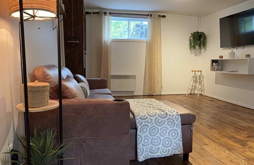 Discover the perfect blend of outdoor adventure and modern convenience in this cozy basement apartment, ideally positioned at the entrance of extensive wooded trails.