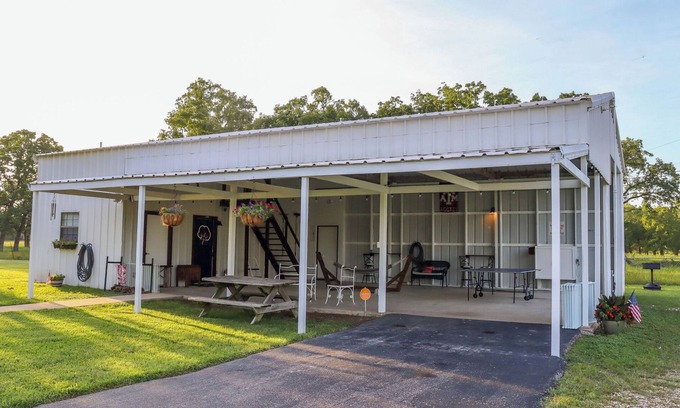 Nestled in the countryside, Reveille's Retreat invites you to unwind and immerse yourself in nature. Sway in a hammock, watch sunsets with grazing deer, and savor life's simple joys. With town nearby, explore endless possibilities: cheer on the Aggies, enjoy live music, or celebrate Aggie Ring dunks and Graduations.