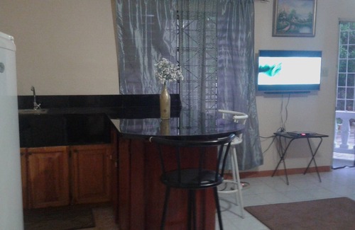 Five Peaks Manor is located on a picturesque home in Retreat Height a quiet neighbourhood a stone's throw away from the beautiful Caribbean Sea. Wi-Fi, hot water among other amenities. Enjoy the lush greenery, fruit trees and fresh country air. A quick drive away from the tourists centres of Montego Bay and Ocho Rios. Apart from the beach nearby, there is Rafting on the Martha Brae river, Chukka Good Hope, Cockpit Country Tours are easy access. Hop in a car and get to many other attractions on Jamaica's North Coast. Hosts live on property and can assist as needed.