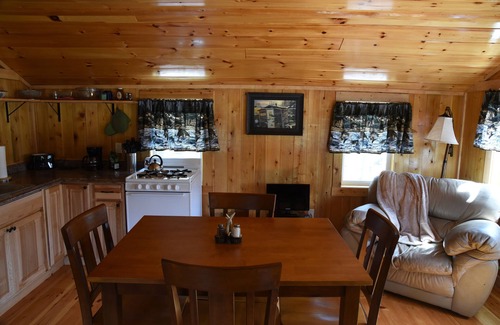 Set on a stream with direct access to The Sunrise Trail, take advantage of hiking, biking and ATVing. Stream allows for canoeing/kayaking while fishing or just taking in the beautiful scenery. Kayaks are provided for your leisure. Groups or couples can get back to nature while surrounded by moose, deer, bear, waterfowl and more. Conveniently located just 20 minutes from Ellsworth and 40 minutes from Bar Harbor & Acadia National Park. With 1200 acres of private land to explore, plenty of outdoor activities, wildlife and all the privacy you could want, our cabins make for a perfect getaway! Our Cabin is green ( run on solar power).