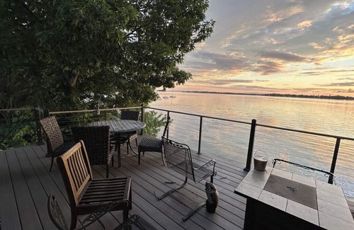 In this spectacular home on Lake Champlain you are right on the lake's edge where you can walk down the stairs and be at the water's edge where you can launch one of our 3 kayaks, or a paddle board or just go for a swim. As you sip your morning coffee on the deck you can watch the birds flying across the water. In the evening you can enjoy a romantic dinner watching the spectacular sunsets over the water. We are a 5 minute walk from the St Albans marina where you can park or rent a boat. There is a bike path in the town that goes as far as Jay Peak and you can rent a bike right in town.