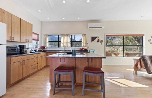 A Far West Nest is a studio guest house with a queen bed. It is well-maintained and equipped with everything you need for a comfortable and relaxing stay. The studio shares a single wall with the main home, and the private entrance allows you to come and go as you please, giving you the freedom to explore the nearby attractions at your own pace.