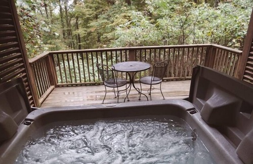 Escape to a romantic themed A-Frame cabin in the Hocking Hills. Tucked away in a grouped setting this cabin inspires the passion inside you with a new decor. Cuddle in front of the fire, or soak in the hot tub and relax. The Romantic Escape has a spectacular woodland view. Romantic packages and added value special items make this the premier choice for a romantic getaway. Optional WiFi in cabin! Close to all the State Parks, world class The Chalets A-Frames are iconic, romantic, cozy and comfortable with two queen bed sleeping areas and one full bath. Arranged along the ridge of a hill, each A-Frames has a private deck with hot tub, grill and view into mature woods. Their vaulted open-concept living areas include a kitchenette, dining for four, fire place, flat-screen tv, exposed beams and lots of light. And every one is pet-friendly*! The A-Frames are at the Chalets' Old Man's Cave location of 140 acres, 31 cabins, pool, firepits, SaunaPods, electric vehicle charging stations, office and neighboring General Store. It sits two miles from the epicenter of the region: Hocking Hills State Park visitors center.